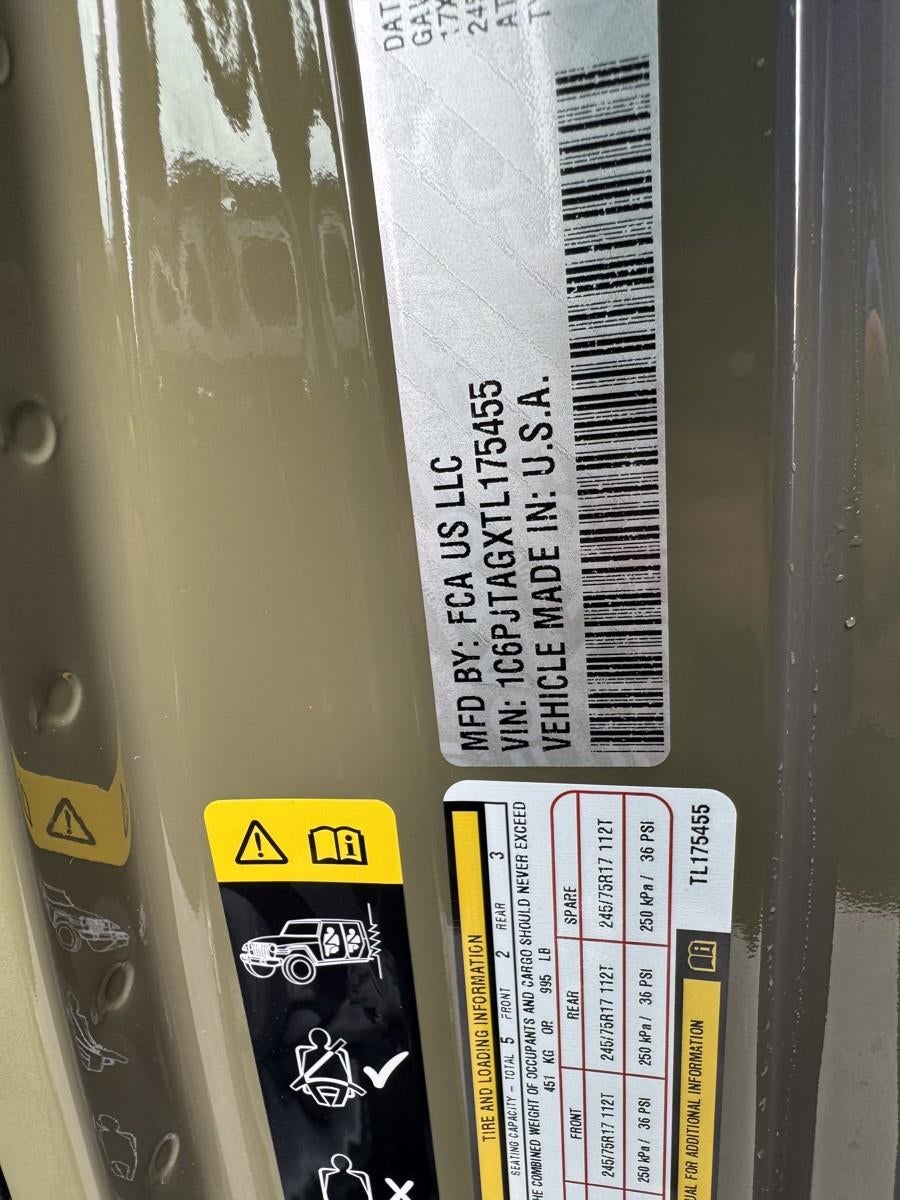 **BLACK FREEDOM TOP 3-PIECE HARD TOP** ($1,895 ADD TO MSRP), 17-INCH X 7.5-INCH GRAY WHEELS, '41 EXTERIOR PAINT, CUSTOMER PREFERRED PACKAGE 24B, 3.6L V6, 8-SPEED AUTOMATIC 850RE TRANSMISSION, 4WD, KEYLESS ENTRY, PUSH BUTTON START, REMOTE START, 12.3'' IN SCREEN DISPLAY, UCONNECT 5, APPLE CARPLAY, ANDROID AUTO, Bluetooth® FOR HANDS-FREE PHONE, REAR VIEW CAMERA, POWER TAILGATE LOCK, 7-PIN AND 4-PIN WIRING HARNESS, ELECTRONIC TRAILER SWAY CONTROL, ELECTRONIC STABILITY CONTROL, ELECTRONIC ROLL MITIGATION