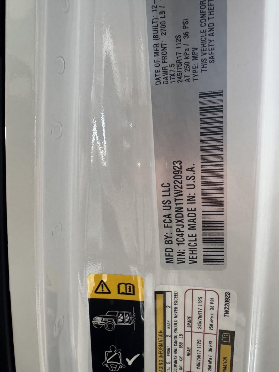**8-SPEED AUTOMATIC 850RE TRANSMISSION** ($2,500 ADD TO MSRP), **BLACK 3-PIECE HARD TOP** ($1,895 ADD TO MSRP), ALL-WEATHER FLOOR MATS BY MOPAR, CUSTOMER PREFERRED PACKAGE 22B, 2.0L, 8-SPEED AUTOMATIC 850RE TRANSMISSION, 4WD, KEYLESS ENTRY, PUSH BUTTON START, REMOTE START, 12.3'' IN SCREEN DISPLAY, UCONNECT 5, APPLE CARPLAY, ANDROID AUTO, Bluetooth® FOR HANDS-FREE PHONE, REAR VIEW CAMERA, HILL-START ASSIST, SENTRY KEY THEFT DETERRENT SYSTEM