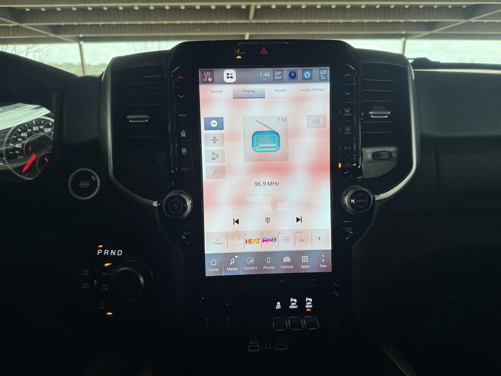 **BIG HORN LEVEL 2 EQUIPMENT GROUP** ($2,895 ADD TO MSRP), **5.7L V8 HEMI® MDS VVT ETORQUE ENGINE W/ STOP/START** ($2,895 ADD TO MSRP), **NIGHT EDITION** ($1,495 ADD TO MSRP), TRAILER BRAKE-CONTROLLER, DIAMOND BLACK CRYSTAL PEARL-COAT EXTERIOR PAINT, FRONT AND REAR RUBBER FLOOR MATS BY MOPAR, 3.92 REAR AXLE RATIO, LONE STAR PACKAGE 27R, 5.7L V8, 8-SPEED AUTOMATIC 8HP75 TRANSMISSION, 4WD, 20'' WHEELS, KEYLESS ENTRY, PUSH BUTTON START, REMOTE START, HEATED STEERING WHEEL, HEATED FRONT SEATS, POWER DRIVER SEAT WITH LUMBAR, POWER ADJUSTABLE PEDALS, 12'' IN SCREEN DISPLAY, UCONNECT 5, ADAPTIVE CRUISE CONTROL WITH STOP AND GO, REAR VIEW CAMERA, REAR POWER-SLIDING WINDOW, POWER TAILGATE-RELEASE, BUCKET SEAT, UNIVERSAL GARAGE-DOOR OPENER, SENTRY KEY THEFT-DETERRENT SYSTEM, ELECTRIC PARKING BRAKE, ELECTRONIC ROLL-MITIGATION, ELECTRONIC STABILITY-CONTROL, ACTIVE LANE-MANAGEMENT SYSTEM, BLIND-SPOT AND CROSS-PATH DETECTION, FULL-SPEED FORWARD-COLLISION WARNING PLUS, HILL-START ASSIST, PEDESTRIAN EMERGENCY BRAKING, TRAILER BRAKE-CONTROLLER