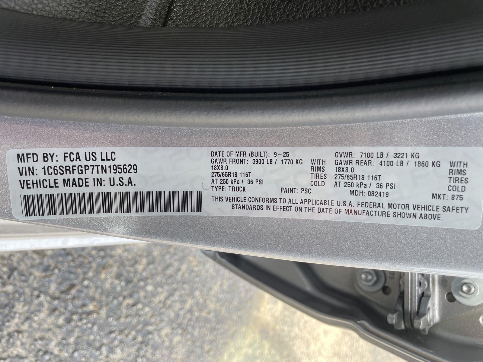 - Rear Tire Size: P275/65TR18